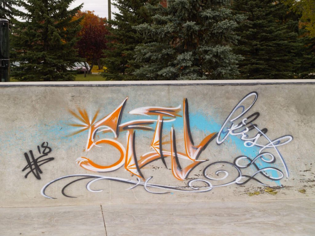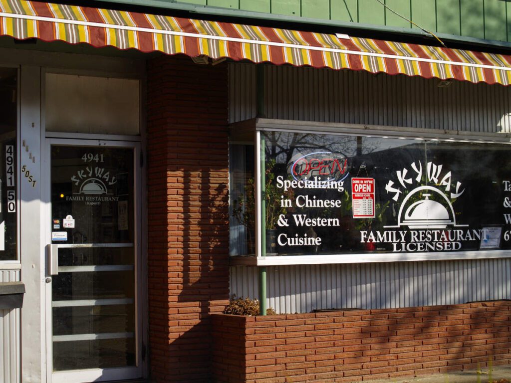 This is one of my favorite store fronts on main street in Camrose. It was built in the early 1900s with an angled front wall leading to the inset door – a very common arrangement for the period. But sometime in the ’90s the facade was updated with a modernist vibe: I think it works.